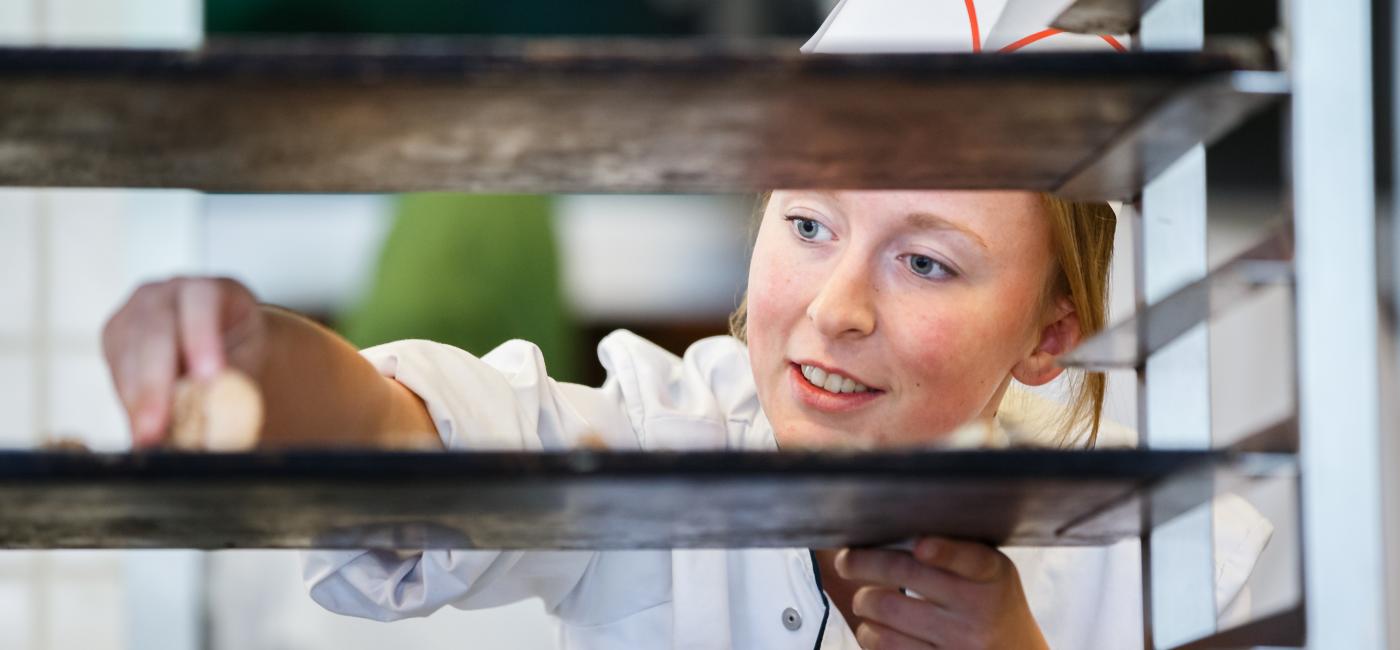 De geur van vers brood. Prachtige taarten. Gebak, koek en andere lekkernijen: jij bakt het! Je maakt de meest heerlijke producten met liefde, tijd én de juiste ingrediënten. In onze bakkerij leer je alles over het bakkersvak, van ontwerp en bakproces tot decoratie en garnering. Na je opleiding kun je aan de slag in een (ambachtelijke) bakkerij of bij een patisserie, een bakkerij gespecialiseerd in gebak en taarten. Je kunt kiezen voor de opleiding Uitvoerend bakker of Zelfstandig werkend bakker. Als je al bent afgestudeerd als zelfstandig werkend bakker en graag bijzondere specialiteiten wilt creëren dan is de opleiding Patissier iets voor jou. Deze opleiding is een specialisatie. In één jaar tijd leer je bij ons om de meest heerlijke gebakcreaties en chocoladeproducten te maken. Veel van onze studenten doen mee aan wedstrijden en behoren daar tot de top. Er zijn al heel veel prijzen in de wacht gesleept. Proef jij ook de passie? Kies dan voor een opleiding in de richting Brood & banket!
