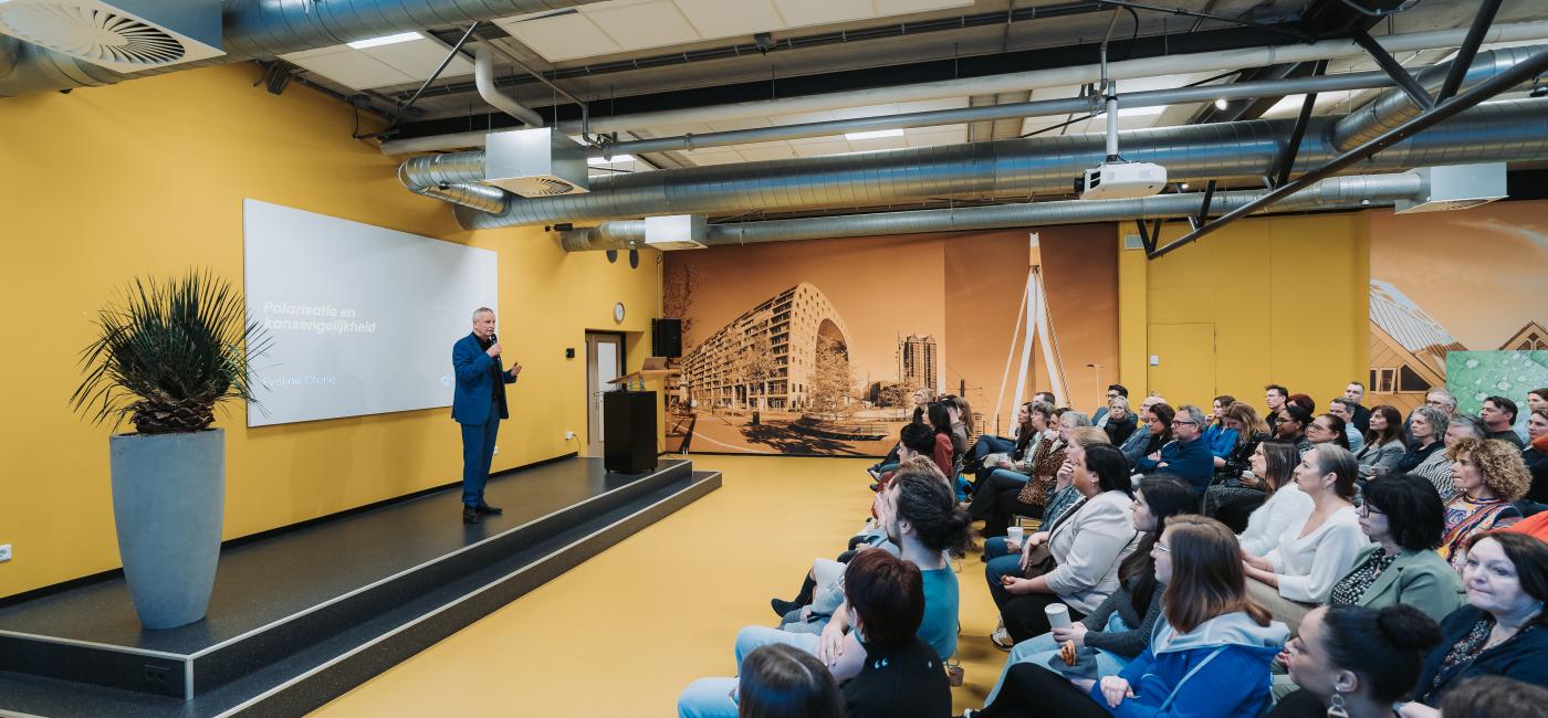 Op dinsdag 27 februari gaf Eveline Crone, hoogleraar Neurowetenschappen in de maatschappij en Erasmus Professor aan de Erasmus Universiteit Rotterdam (EUR) een inspirerende lezing over Polarisatie en Kansenongelijkheid. Tijdens de bijeenkomst bij Albeda is het Manifest Jongerenperspectief op Kansongelijkheid in het onderwijs aangeboden aan het college van bestuur van Albeda en alle aanwezigen in de zaal.